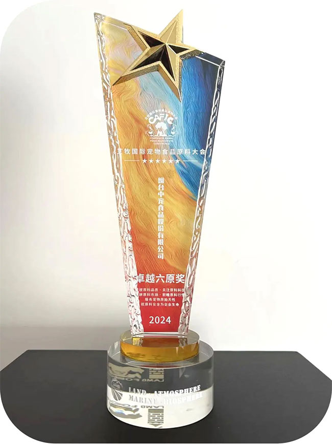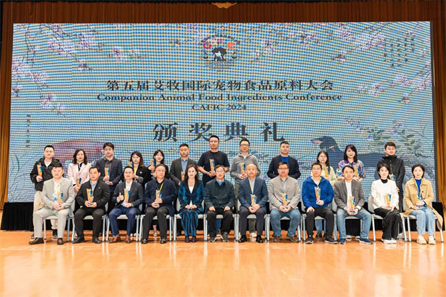 为推动宠物食品原料的创新与升级,提升行业竞争力。4月24日,第五届艾牧国际宠物食品原料大会在扬州会议中心盛大开幕,多国使领馆农业贸易部门及国内外知名宠物食品企业代表莅临大会现场,共谋国际合作新篇章。凭借严格的质量管控和优秀的生产品质,中宠股份成功以投票第一名的优异成绩斩获艾牧国际宠物食品原料大会最高荣誉之一——“卓越六原奖”,中宠股份企业综合实力及行业引领地位获得广泛认可。