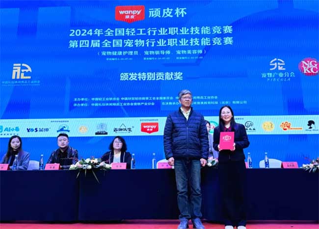12月20日,由中国轻工业联合会、中国财贸轻纺烟草工会全国委员会、中国礼仪休闲用品工业协会共同主办,中国礼仪休闲用品工业协会宠物产业分会承办的“wanpy顽皮杯”2024年全国轻工行业职业技能竞赛—第四届全国宠物行业职业技能竞赛总决赛在成都圆满落幕。中宠股份副总裁助理孟庆莉女士出席闭幕式并致辞。作为中国礼仪休闲用品工业协会宠物产业分会的会长单位,中宠股份已连续四届总冠名赞助该项赛事。
