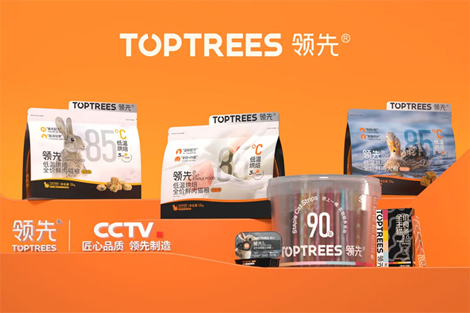 Toptrees领先®满足犬猫健康成长的营养需求,坚持用最严谨的态度和最专业的生产技术,以给用户打造“领先安心粮,上市工厂造”极致安心的产品体验为品牌宗旨。作为中国宠物行业首家定制化深度合作品牌,Toptrees领先®凭借过硬的品质与创新的模式,荣获“CCTV 匠心品质,领先制造” 认证。在消费迭代加速的当下,Toptrees领先®精准洞察Z世代消费趋势,通过与甄嬛传、武林外传跨界联名、情感化产品设计等创新营销,在年轻群体中实现精准破圈。