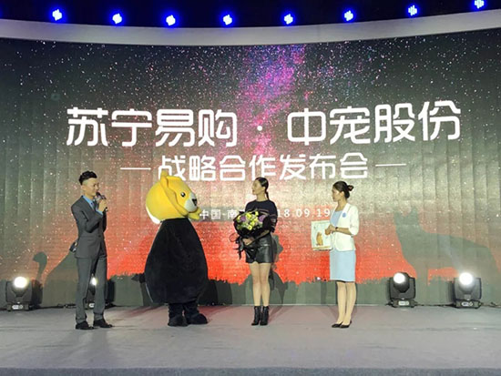 在发布会当天,小宋佳作为中宠狗粮的最新代言人,现场分享了自己养狗狗的经验,并给战略合作伙伴苏宁易购送上了礼物,那就是中宠狗粮全新推出的两款产品:泰迪和拉布拉多专宠专用粮。作为战略签约的见面礼,这两款产品将在苏宁易购独家首发。