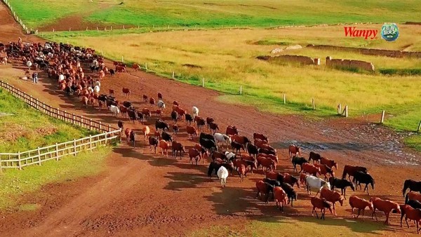 远离城市喧嚣,美丽辽阔的草原上,狗狗们玩得不亦乐乎,吃得津津有味。在这一碧万顷的草原里,放牛、牧羊、策马扬鞭,一切都是那么美好!