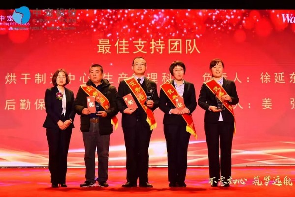 中宠股份取得今天的成绩,离不开全体员工的辛勤努力,更离不开优秀员工骨干起到的模范带头作用。付出终有回报,年会中,中宠股份常务副总裁江移山先生对在公司奋斗十年、十五年、二十年的同事颁发了“满勤永续员工”荣誉称号,感谢大家对公司始终如一的陪伴和坚守,为公司发展所付出的汗水和努力!并对2019年度先进个人和团队进行了隆重表彰,感谢他们一年来的辛勤付出!