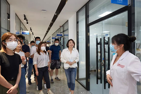 而后,阿里团队实地走访了中宠检测中心、研发中心,还有第九零食工厂和现代化立体仓库。近距离考察了中宠公司的供应链实力,从原料采购到产品研发,从工艺设备到生产现场,从品质管控到成品出库等全环节,无一不展示出中宠全球共享同一品质的超高管理标准。