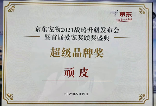 而在19号的亚宠北京展首日,中宠股份旗下自主品牌Wanpy顽皮在“京东宠物2021战略升级发布会暨首届爱宠颁奖盛典”上荣获“超级品牌奖”。
