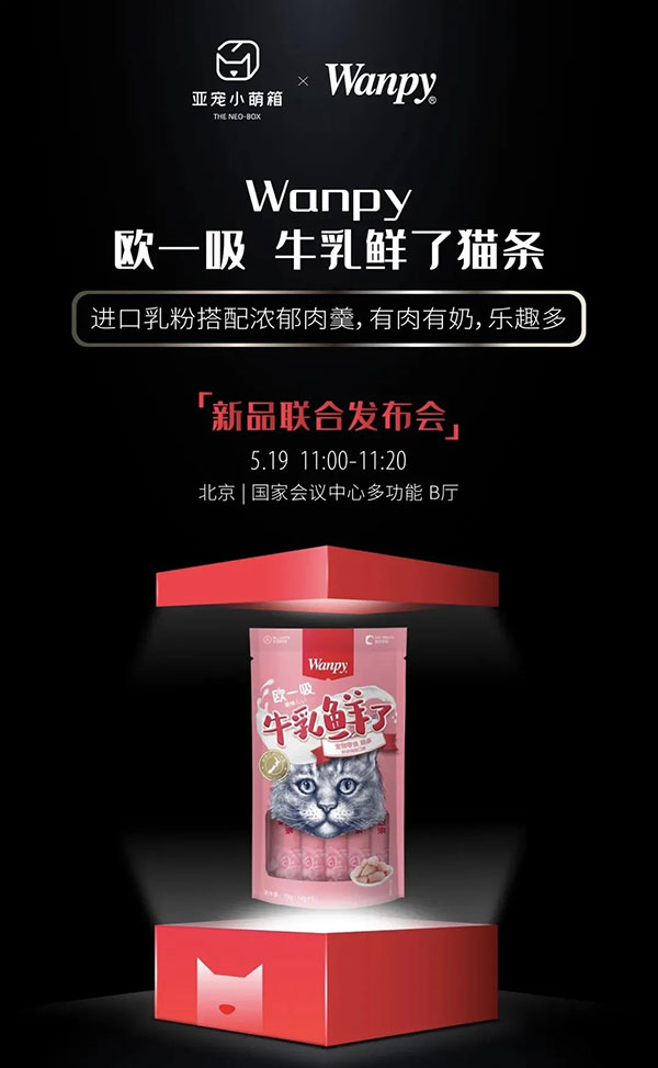 而在5月19日的亚宠小萌箱-新品联合发布会上,Wanpy顽皮携欧一吸「牛乳鲜了」系列宠物零食猫条盛装亮相。