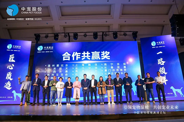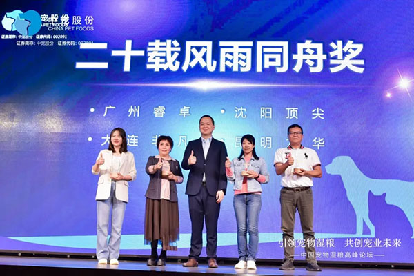 大会最后,特别设置了颁奖环节,郝董及相关领导对中宠股份的优秀合作伙伴进行表彰。“战略同盟奖”“二十载风雨同舟奖”“突出贡献奖”“乘风破浪奖”“新锐突破奖”“合作共赢奖”……奖项是肯定,也是对和中宠股份一起前行的伙伴们的感恩。