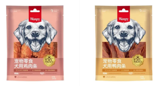 作为中国宠物零食的开创者,肉干零食类产品在中宠股份成立之初即出口日本并同步国内市场销售。1999年曾一度创造了“wanpy”就是鸡肉干,鸡肉干就是“wanpy”的神话。