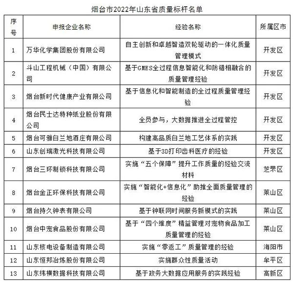 据悉,此次山东全省共有105家企业入选,烟台市13家企业入选,入选企业数量排名全省第二。