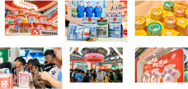 毛孩子们的现身也为展台增添不少俏皮气息,不少萌宠被wanpy顽皮®、ZEAL真致®精致美味的产品所吸引,在展台前驻足品尝,更有达人携明星萌宠现身展台拍照打卡,wanpy顽皮®展台的举jio打卡墙和ZEAL真致®的0号罐打卡角成为了展会的必拍打卡点,人宠和谐的逛展气氛非常温馨。