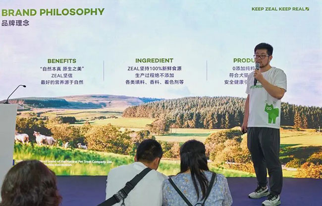 作为新西兰原产地品牌,新西兰宠物食品国家馆也与ZEAL真致®在亚宠展现场进行了一场精彩联动。在国际及中国港澳台地区宠物产品展区,中宠股份市场管理中心总经理兼电商管理中心副总经理郝宸龙先生就ZEAL真致®的品牌理念和发展近况进行分享。