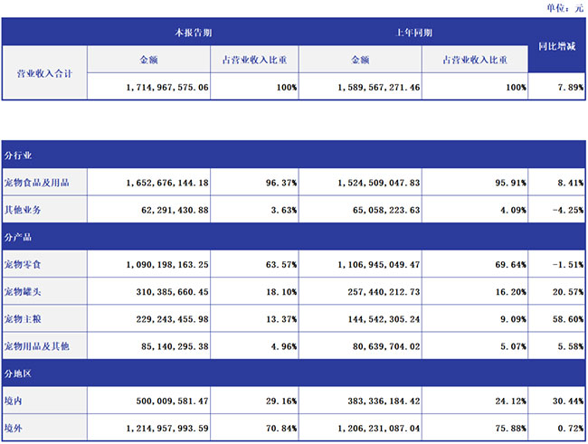 中宠股份2023年中报数据