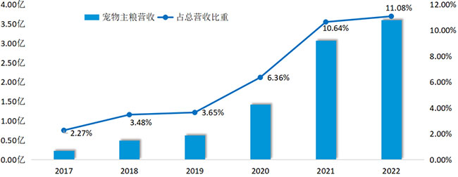 中宠股份2017~2022年宠物主粮品类