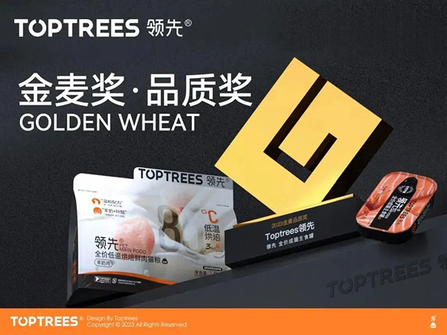 历经3个月的评审,Toptrees领先®烘焙猫粮、99主食罐两款热门产品同时荣获2023年金麦奖·品质奖,这也是Toptrees领先®连续四年获得金麦奖·品质奖