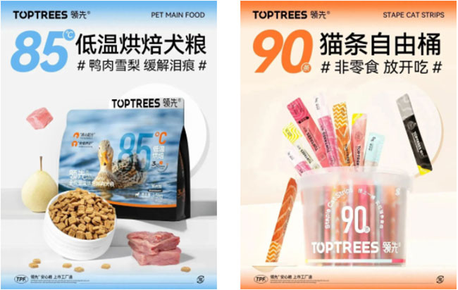 2023年,Toptrees领先®在产品端持续向烘焙粮赛道进军,推出策略型产品——低温烘焙粮。三季度,Toptrees领先®正式上新低温烘焙犬粮,布局烘焙犬粮赛道。不仅如此,Toptrees领先®主食猫条全新上线墨鱼、鹿肉、火鸡等口味,并特别定制90条大桶装,为消费者提供更丰富的消费选择。今年,Toptrees领先®还将陆续推出主食汤包、主食冻干等新品,不断丰富品牌产品线,为养宠家庭提供多样化的喂养选择。