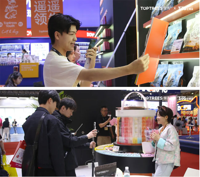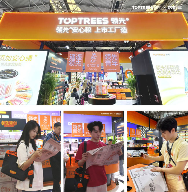 产品方面,本届它博会上,Toptrees领先®携众多新品亮相它博会。低温烘焙鲜肉猫粮蛋黄兔口味首次亮相便吸引一众消费者驻足。Toptrees领先®99主食罐系列舔舔罐也在质地升级后亮相它博会展台,丝滑的冰淇淋质地备用户青睐。Toptrees领先®旗下幼猫系列、生骨肉主食冻干、mini小餐盒等全新产品也都在本次展会悉数亮相。