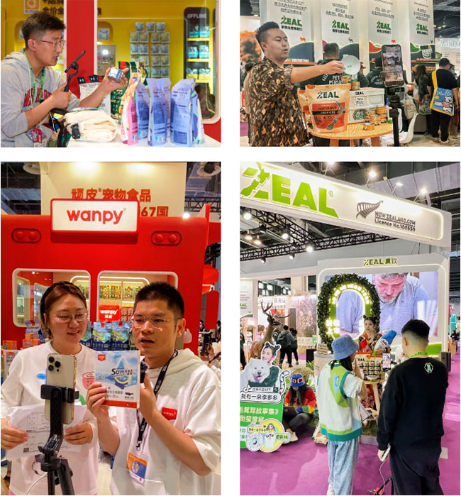 和展会现场一样火热的,还有品牌的线上直播间。它博会期间,wanpy顽皮®新西兰ZEAL真致®抖音直播火力全开,@弹簧小姐 @顾TA家的德文卷毛猫 @我有一朵李多多 @伍佰万是只雪纳猪 @大皮球好饿 等数十位宠业达人前来wanpy顽皮®、新西兰ZEAL真致®展台直播助阵,为粉丝们带来最新的产品优惠和展会资讯,还与现场参展粉丝互动交流,分享养宠心得。