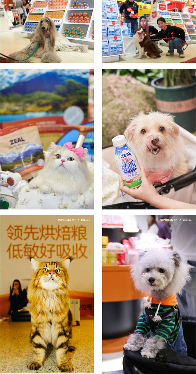 循着美食的香气,来到wanpy顽皮®、新西兰ZEAL真致®、Toptrees领先®品牌展台打卡的萌宠络绎不绝。可爱的小家伙们或活泼跳跃,或乖巧依偎,为品牌展台增添了不少生机与活力。