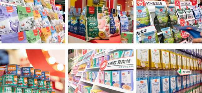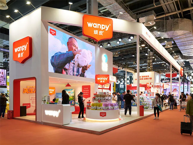 走进wanpy顽皮®品牌展台,首先映入眼帘的是多款热门主粮产品:口味丰富的冻干四拼粮、真鲜肉高营养的鲜肉无谷粮、添加主食级生骨肉冻干的冻干双拼粮、生骨肉配方的原生力犬主食罐、98%高肉高消化率的顽皮大满罐、浓郁汤汁的顽皮主食鲜封包、口碑与销量双丰收的欧一吸系列多肉芝士主食猫条等。在中宠股份“聚焦战略”的指导下,wanpy顽皮品牌在宠物食品主粮赛道持续发力。