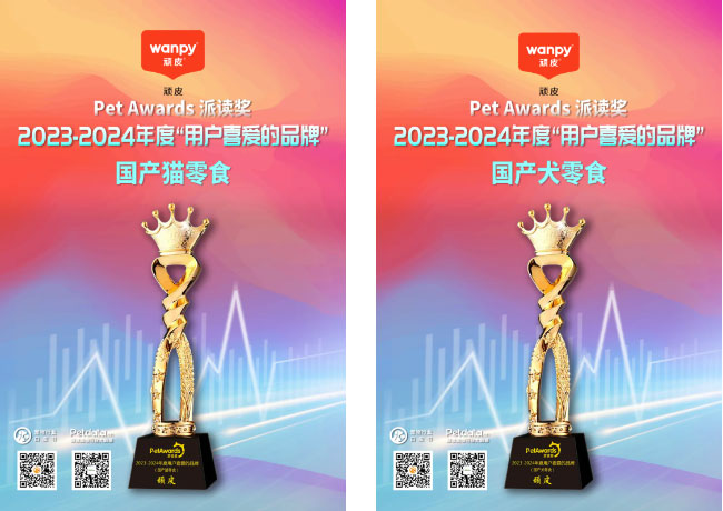 在 2023 中国宠物行业白皮书年度盛典上,wanpy顽皮®品牌成功斩获PetAwards派读奖 2023 - 2024 年度“用户喜爱的品牌(国产猫零食)”以及“用户喜爱的品牌(国产犬零食)”两项大奖,新西兰ZEAL真致®在 2023 中国宠物行业系列白皮书年度盛典上成功斩获PetAwards派读奖 2023 - 2024 年度“用户喜爱的品牌(进口犬零食)”荣誉奖项,零食产品喜爱度深受消费市场认可。