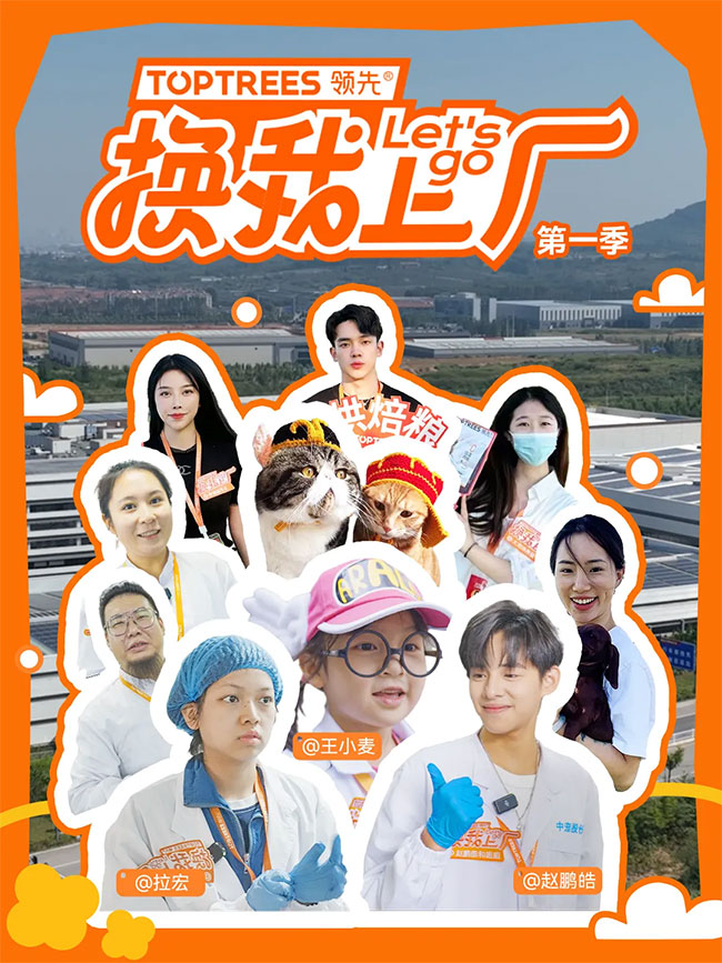 2023 年下半年,Toptrees领先®品牌以工厂为核心,打造“安心”体感化品牌心智。依托《换我上厂》第一季特别活动,将宠粮大厂的真实环境及工作状态呈现给各位宠物家长,并让大家真实地感知到Toptrees领先®品牌“领先安心粮,上市工厂造”的强大实力。在本次活动中,Toptrees领先®把“安心”这一品牌关键词,拆解成了品牌切实的“硬核”资产,向小麦、拉宏、赵鹏皓等 10 位KOL发出大厂Offer,特别邀约跨界达人进厂沉浸式打工,将真实的工作日志呈现给大众。以上市工厂为区隔,Toptrees领先®烘焙猫粮在各细分赛道打造差异化联想,同时拓展非垂类用户人群。