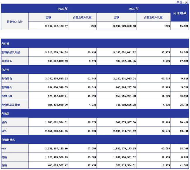 中宠股份2023年年报:营收37.47亿元,净利2.33亿