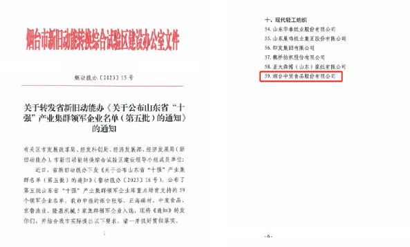 2023 年,中宠股份持续前进,接连揽获多项省市级和国家级荣誉:2023 年度国家知识产权示范企业、山东省“十强”产业集群领军企业、宠物食品企业科技创新奖、山东省诚信企业荣誉称号,企业实力及社会贡献收获来自政府及社会各界的高度认可。