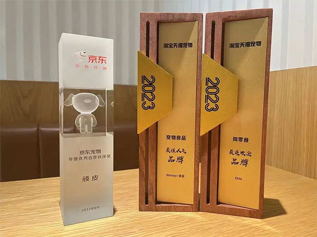 渠道方面,在天猫、京东平台的宠物行业发布会上,中宠股份旗下核心自主品牌wanpy顽皮®斩获“淘宝天猫宠物频道最佳人气品牌奖”及“京东宠物年度优秀合作伙伴奖”;新西兰ZEAL真致®荣获“淘宝天猫宠物频道最受欢迎品牌奖”。
