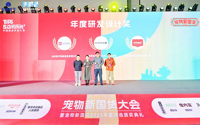 产品方面,wanpy顽皮®品牌旗下热门新品生骨肉双拼猫粮成功荣获 2023 宠物新国货猫主粮品类“年度创新产品奖”荣誉,产品创新实力及品牌发展潜力收获行业肯定。