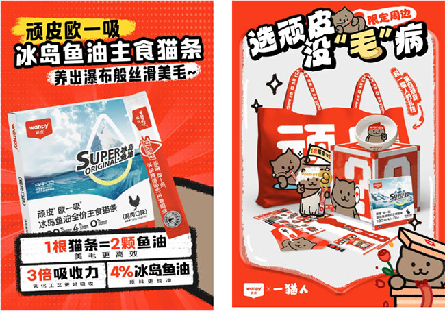 具体来看,wanpy顽皮®品牌上半年与热门潮趣IP“一猫人”快乐携手,成功发起了#14天改掉坏毛病 话题挑战,通过一系列创意TVC及联名周边,迅速赢得了消费者的广泛追捧,实现了全平台粉丝数量的飞跃式增长。相关联名营销活动不仅在618购物狂欢节期间激发了全平台粉丝的购买热情,更是为wanpy顽皮®品牌新推出的重磅新品——顽皮鱼油猫条,赢得了超高的市场关注度。