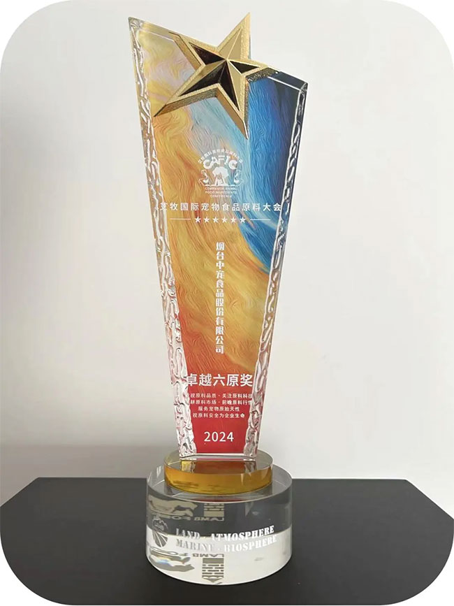 凭借严格的质量管控和优秀的生产品质,中宠股份在今年上半年以第一名的优异成绩斩获艾牧国际宠物食品原料大会最高荣誉之一——“卓越六原奖”,充分肯定了中宠股份在原料品质、科技、市场深度、行情前瞻性、服务宠物天性以及原料安全方面的杰出表现。中宠股份严守食品安全底线,为宠物食品行业树立典范与标杆。