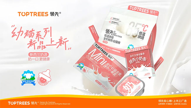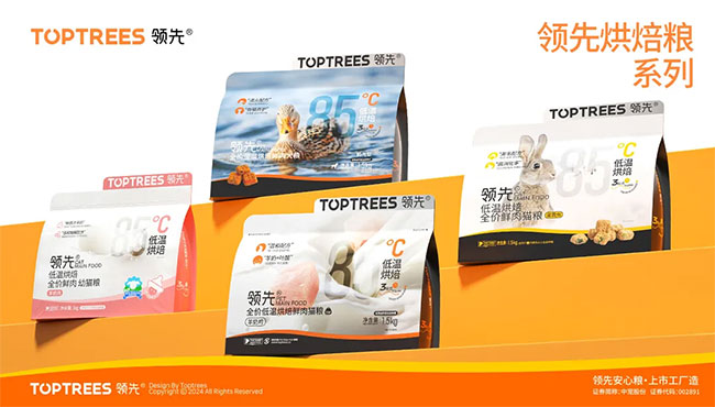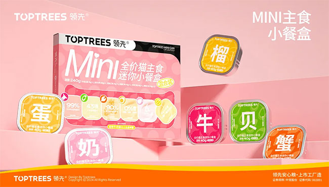 产品方面,Toptrees领先®上半年重点投入主粮产品,重磅产品烘焙粮系列上新蛋黄兔口味,以A级鲜伊拉兔肉原料、6重美毛因子、96.1%胃蛋白酶消化率三重功效备受用户喜爱,助力Toptrees领先®烘焙猫粮成为天猫行业Top级产品,抖音市场占有率跃居TOP2。以小鸟胃猫咪需求而诞生的Mini主食小餐盒也在今年上半年迎来上新,6种口味2种质地,40g新鲜小罐俘获猫咪味蕾。与此同时,Toptrees领先®品牌幼猫专研Toptrees Baby系列正式上线,甄选新西兰奶源,让猫生领先一步。Toptrees领先®品牌主粮系列产品体系在2024年已实现进一步的完善布局。