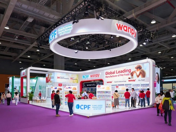 本次参展,中宠股份展位延续现代简约风格,敞开式的设计为观众带来宽敞、开放、明快的视觉体验,突出了品牌的国际化形象和高质量的产品品质。此外,集团的英文logo“CPF”首次亮相宠交会。CPF不仅是中宠股份的象征,也代表着“Care Pet Food”,承载着“陪伴(Companionship)、先进(Advanced)、责任(Responsible)、专业(Expertise)” 的核心价值,彰显集团在全球宠物食品领域的品牌主张与长期承诺。